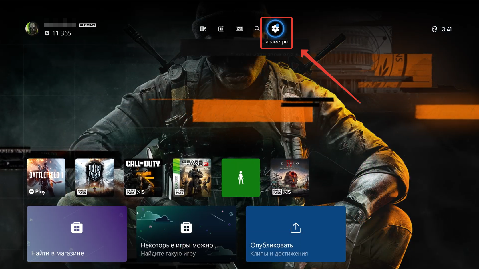 - Открыть параметры Xbox