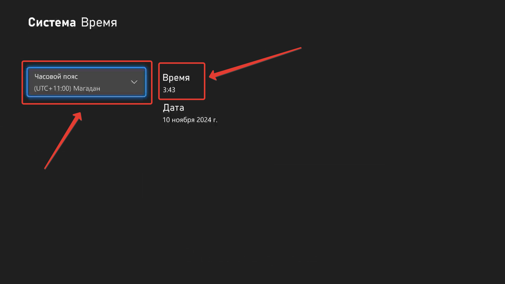 Инструкция по изменению времени на Xbox One, Xbox Series S/X